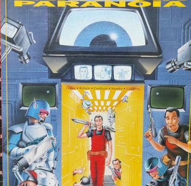 Paranoia is a tabletop role-playing game set in a twisted future where fear, obedience, and absurdity have replaced freedom. It is a world ruled by a single, all-powerful artificial intelligence known only as The Computer — a smiling tyrant that watches everything, controls everyone, and demands only one thing from its citizens: happiness.